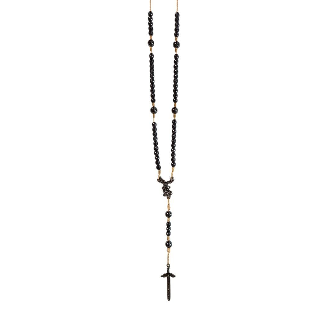 Terço de Pedra Hematite/Corda c/fecho 8MM, São Miguel