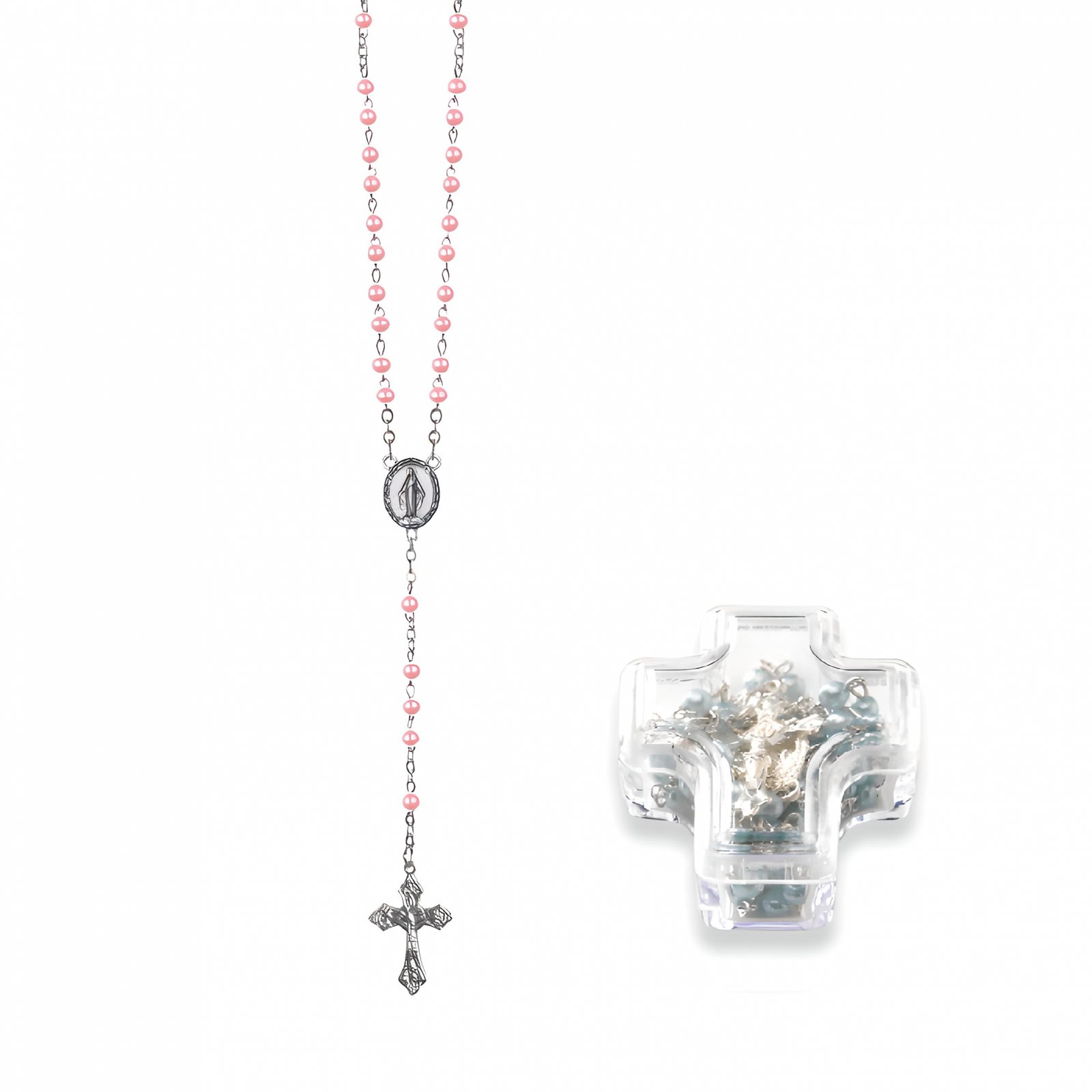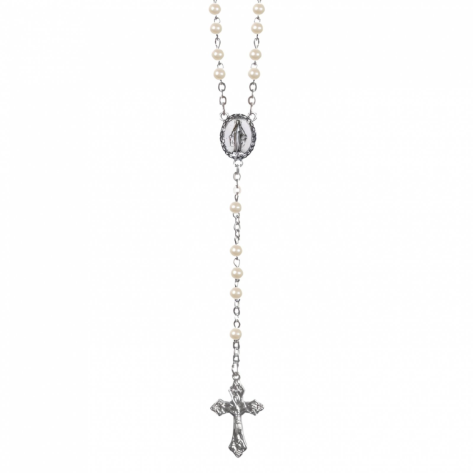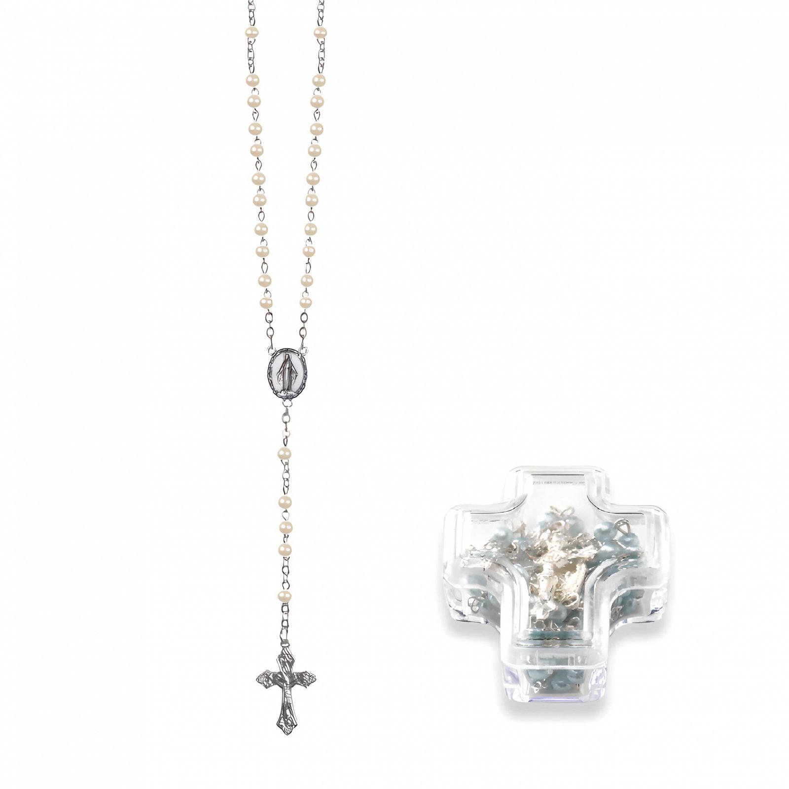 Terço de Pérola 4MM c/fecho e c/ caixa Cruz
