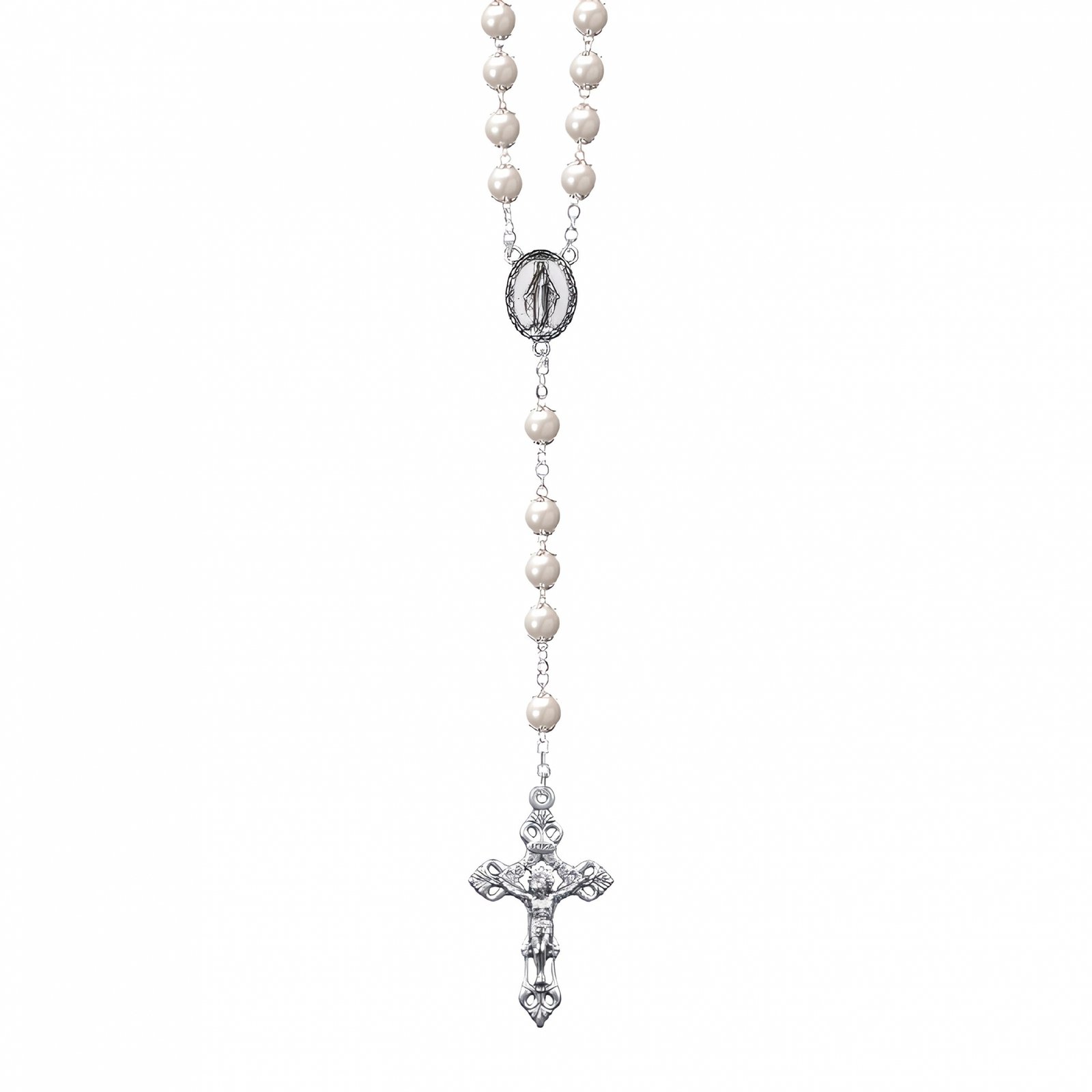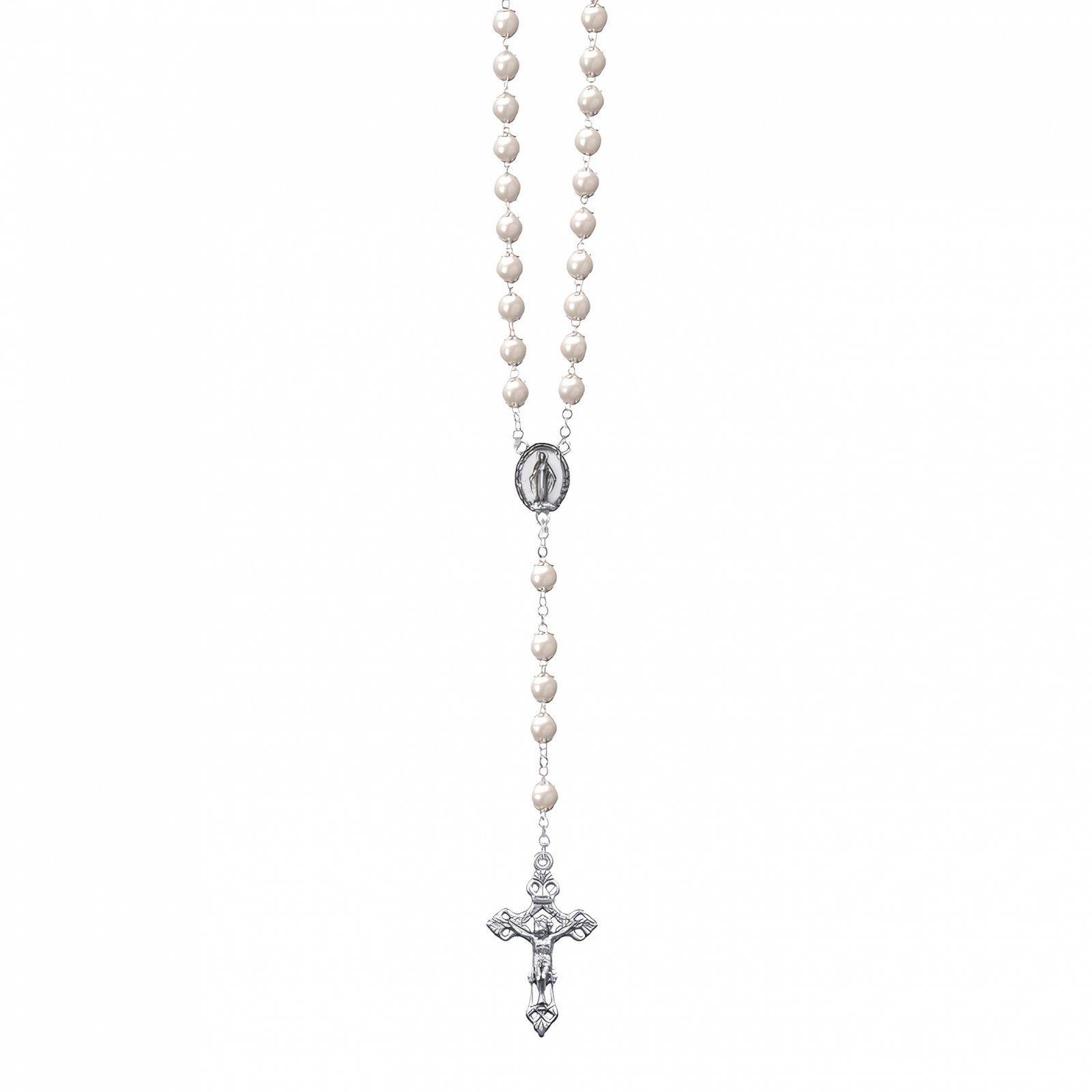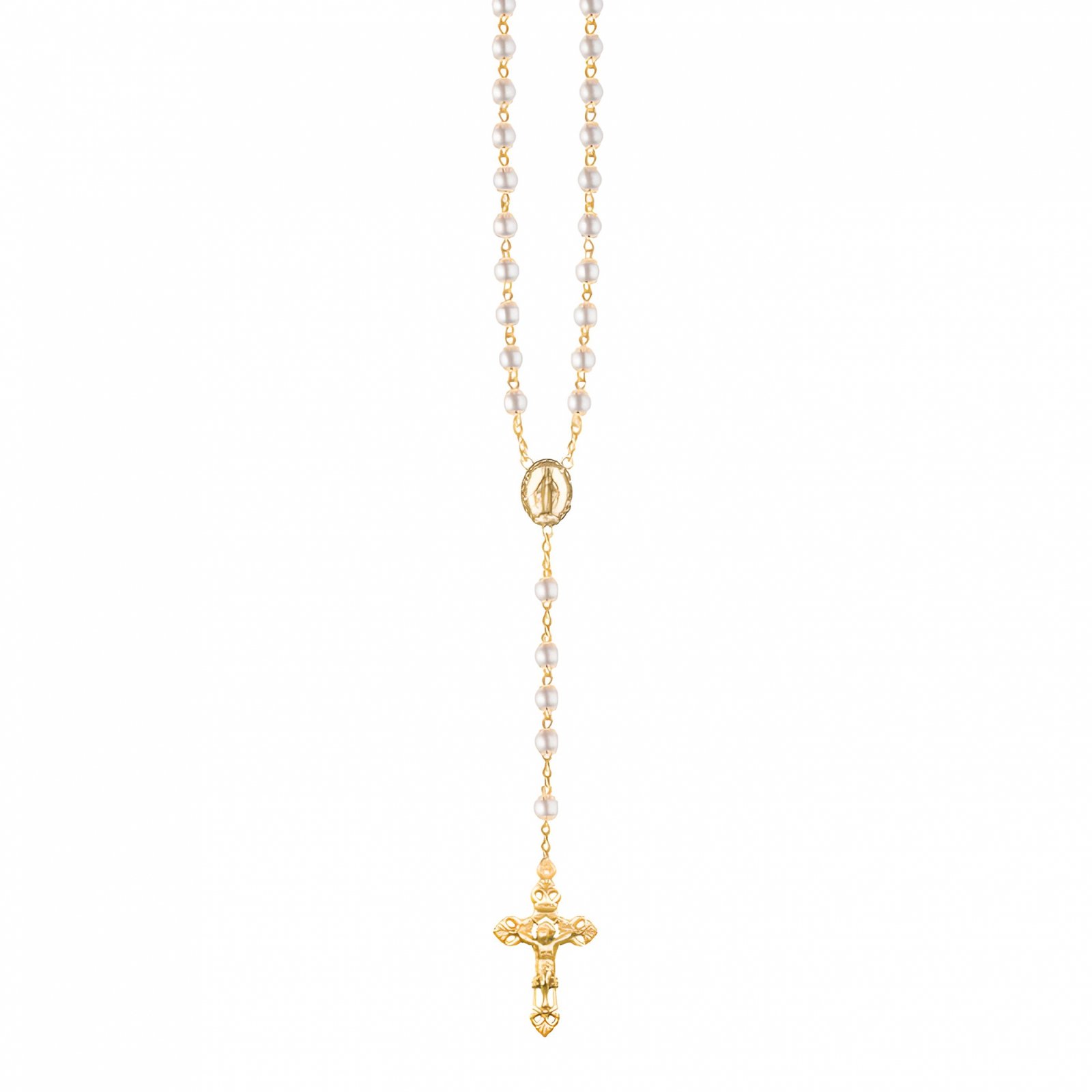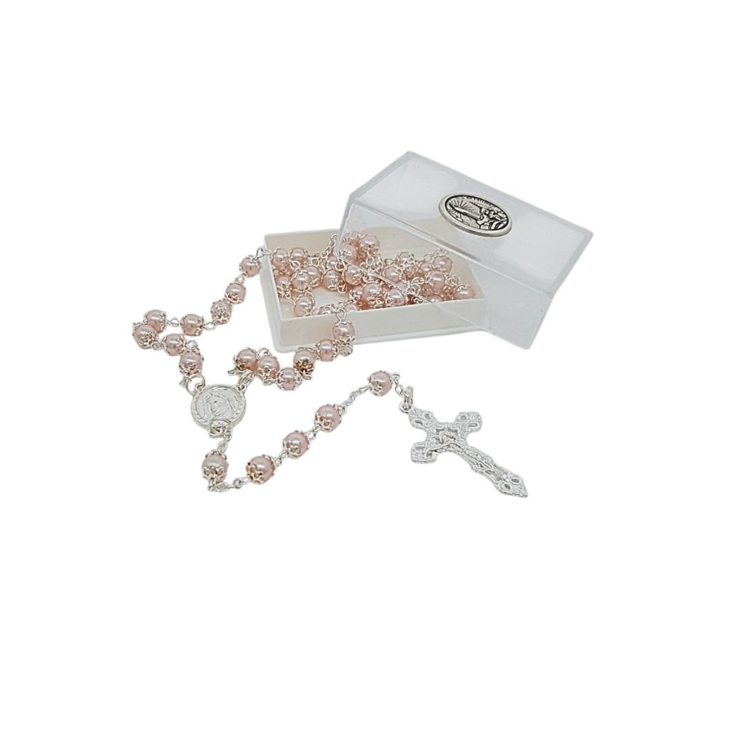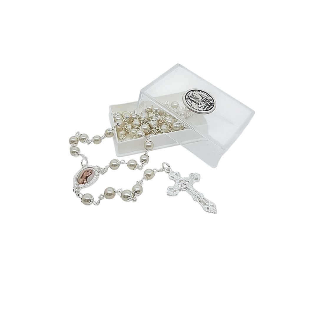 Terço de Pérola 6MM c/ Anilha Dourada