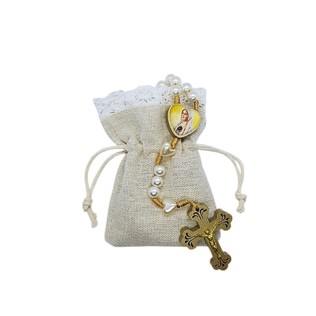Terço de Pérola 6MM c/Medalhas Santo António/São Francisco