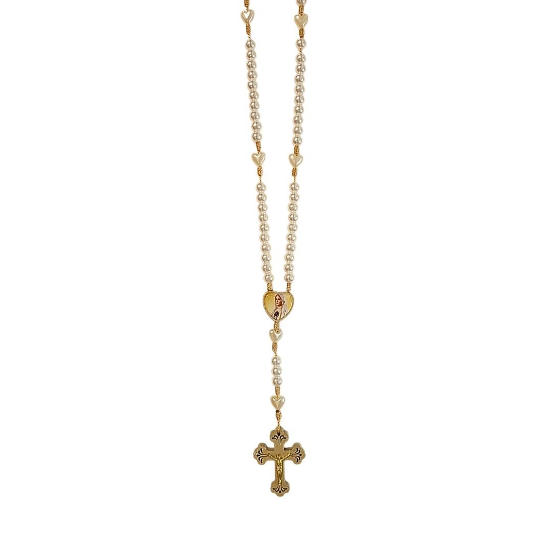 Terço de Pérola/Corda 8MM, c/Pai-Nossos em Coração, Nossa Senhora de Fátima