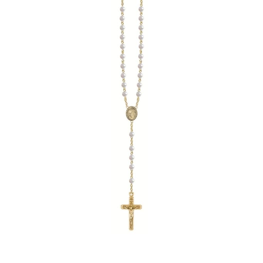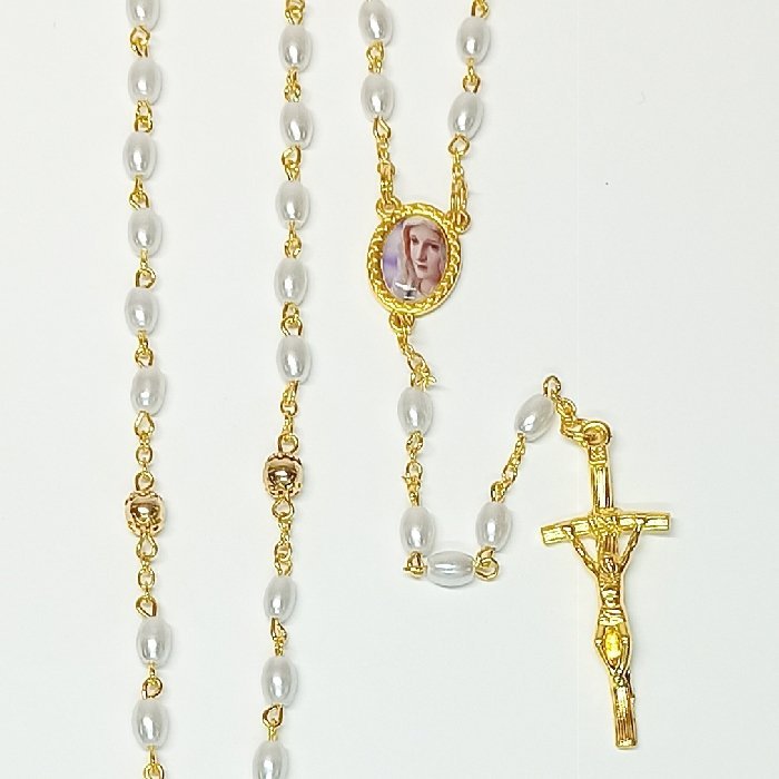 Terço de Pérola Oval 5/7 c/ Pai Nosso Dourado