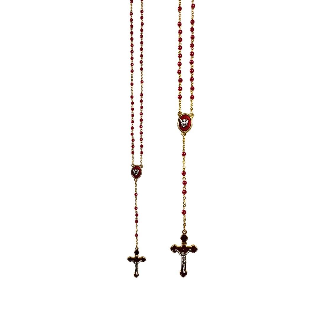 Terço de Pérola Vermelha, 4MM, c/Medalha, Crisma