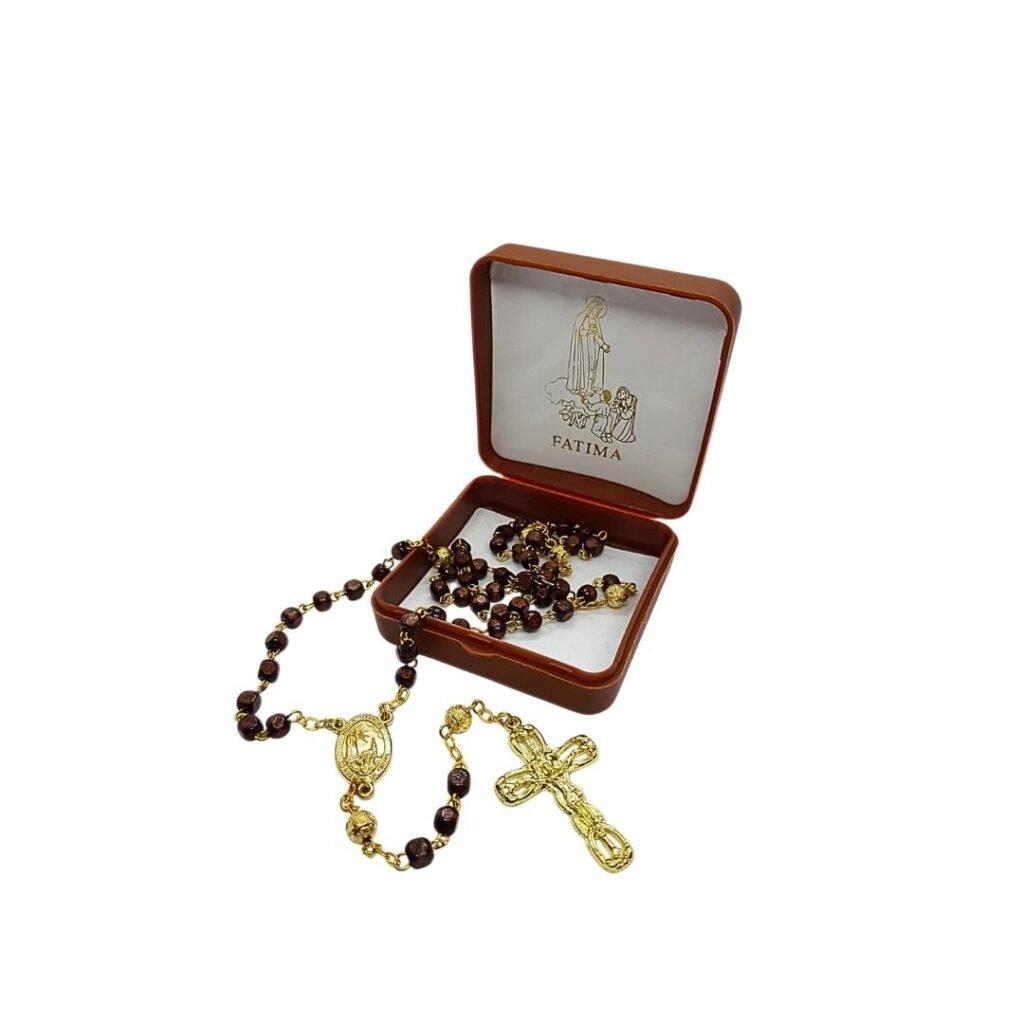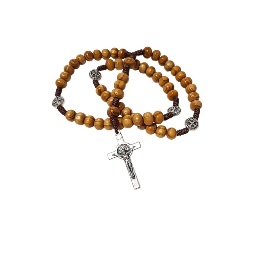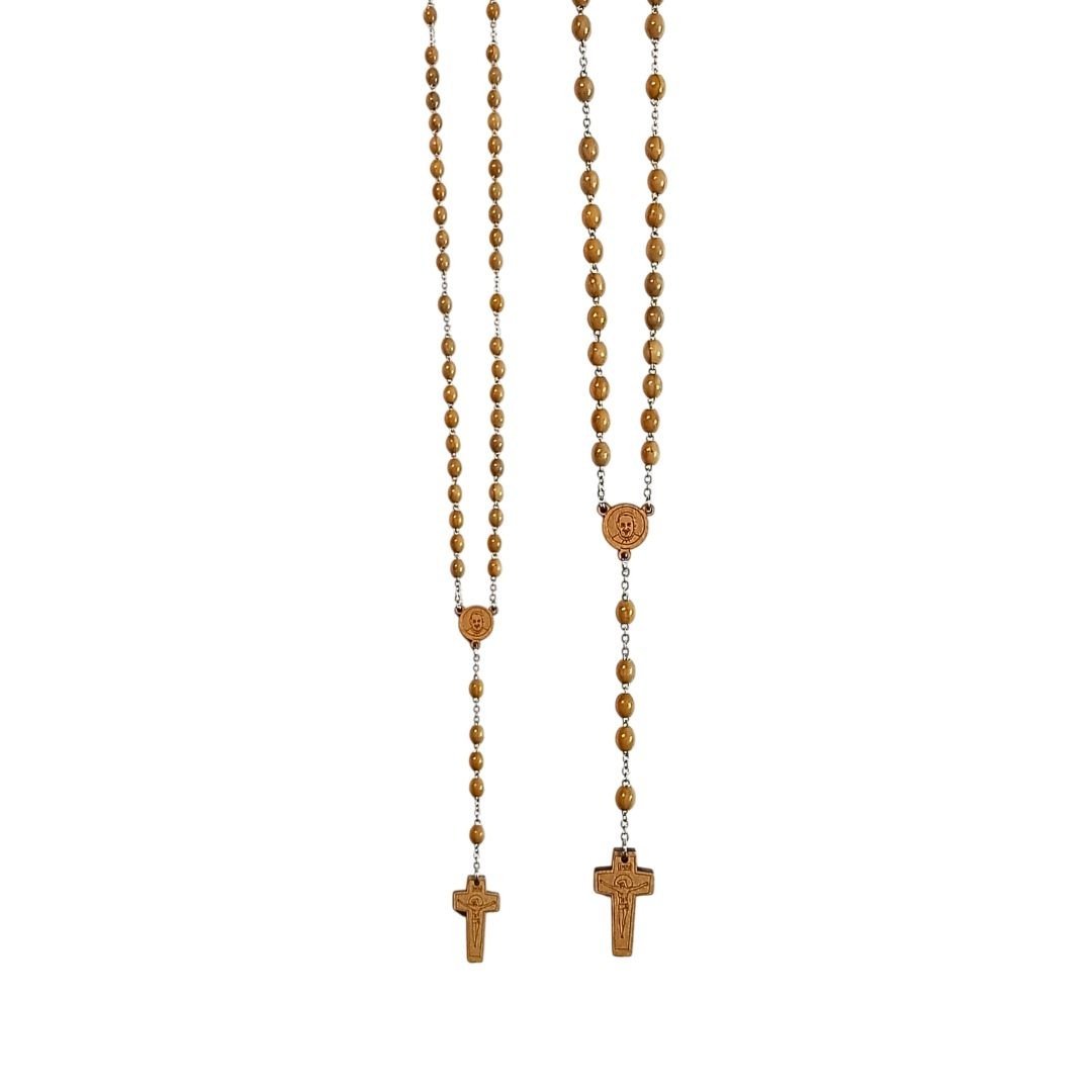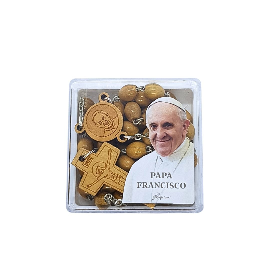 Terço do Papa Francisco em Madeira de Oliveira Oval 6/8, Gravado a Laser, c/caixa