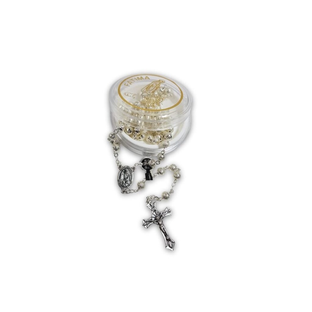 Terço em Metal Laminado Alpaque Prateado, 8mm