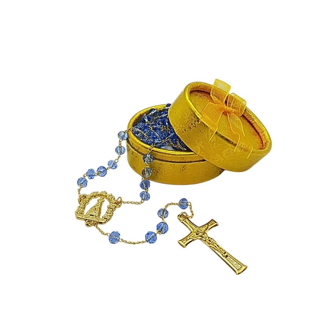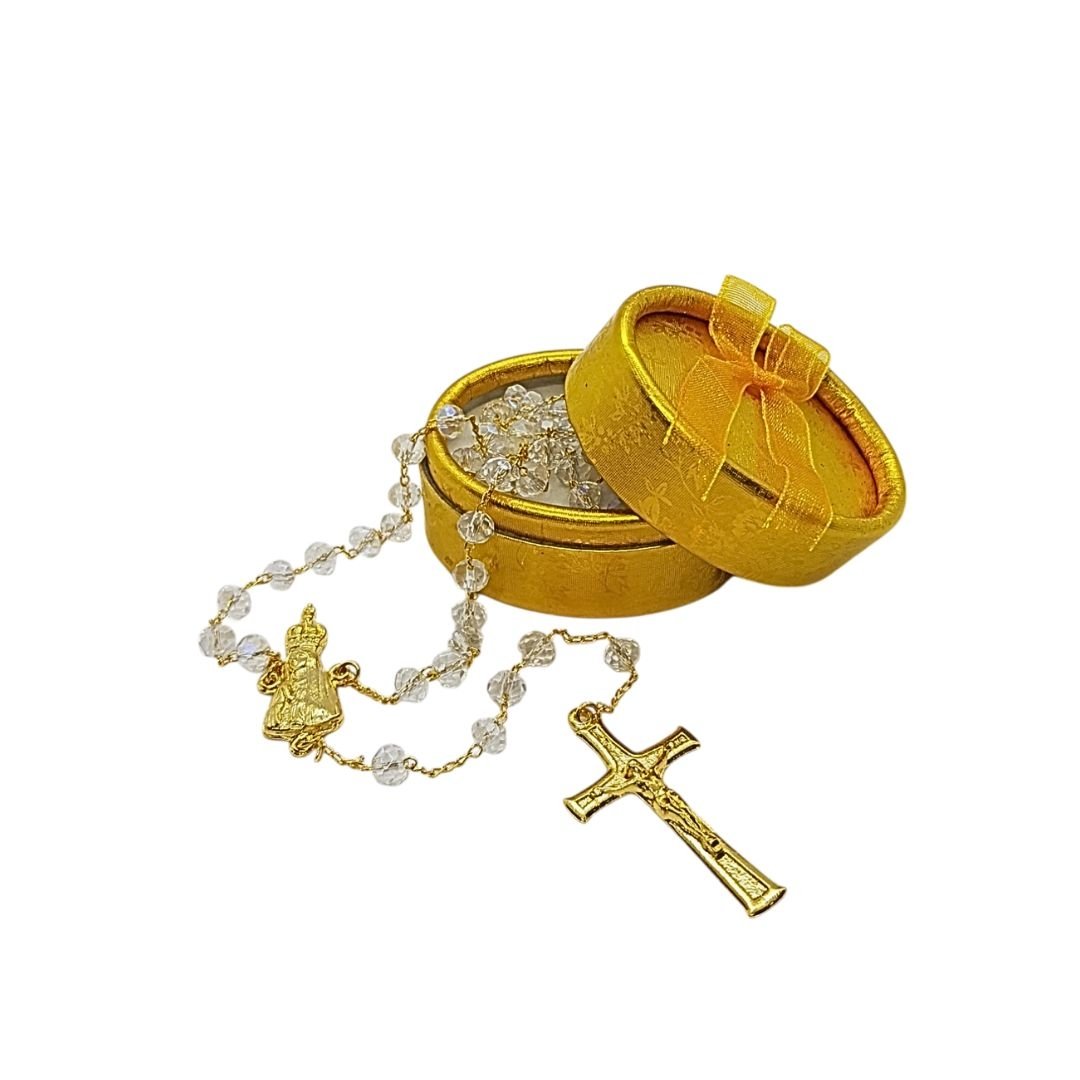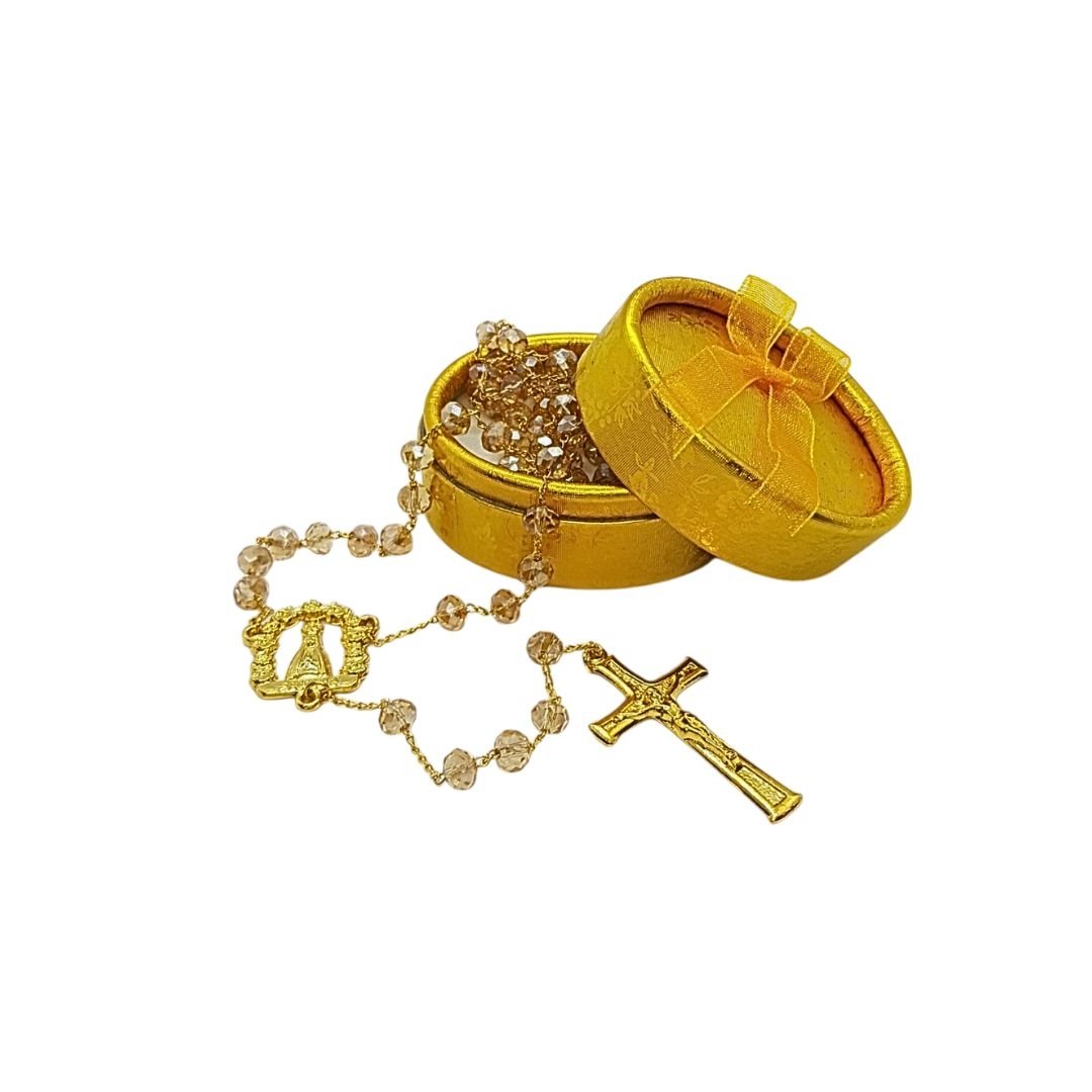 Terço/Fio de Cristal Dourado c/caixa, 6mm