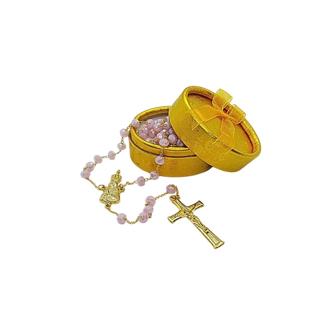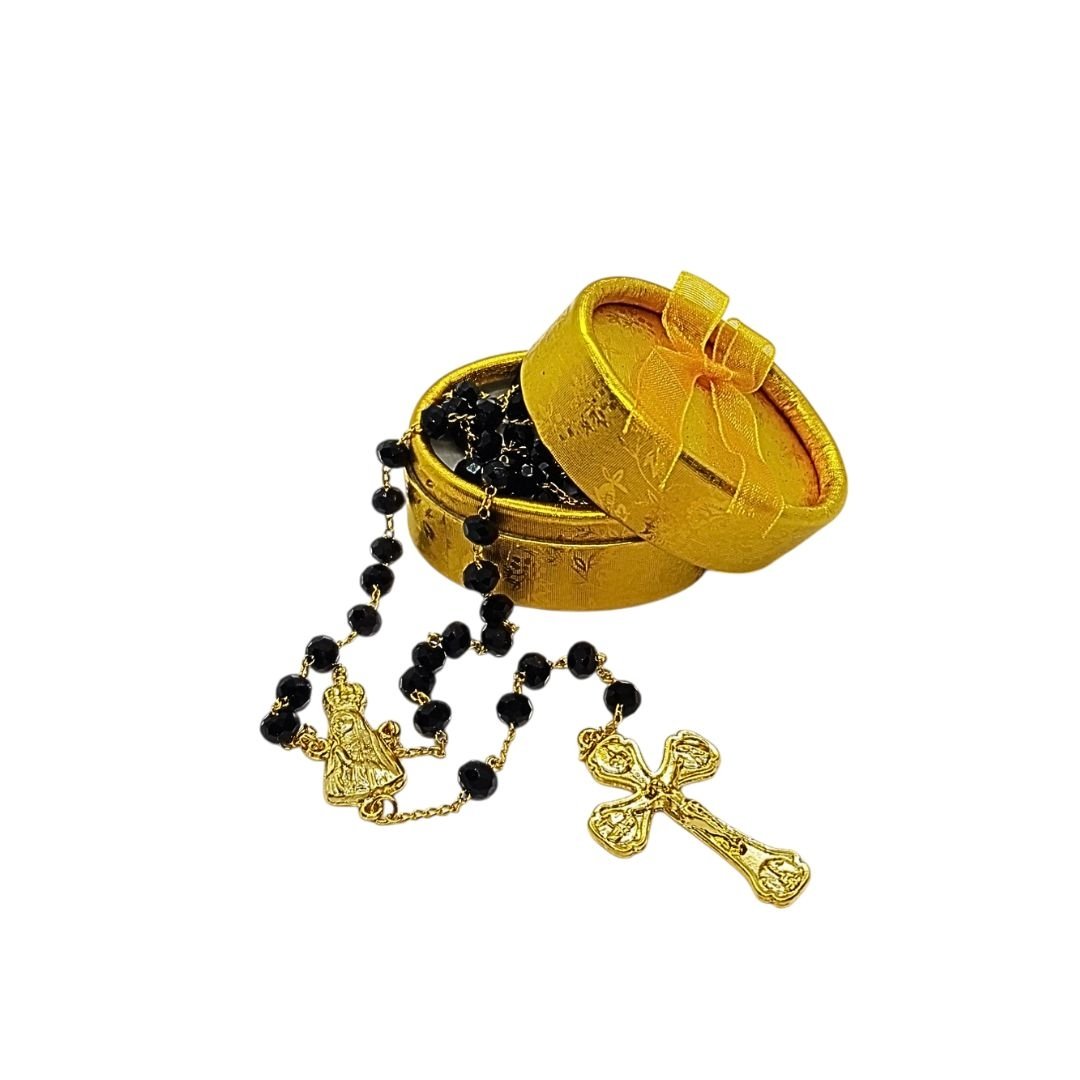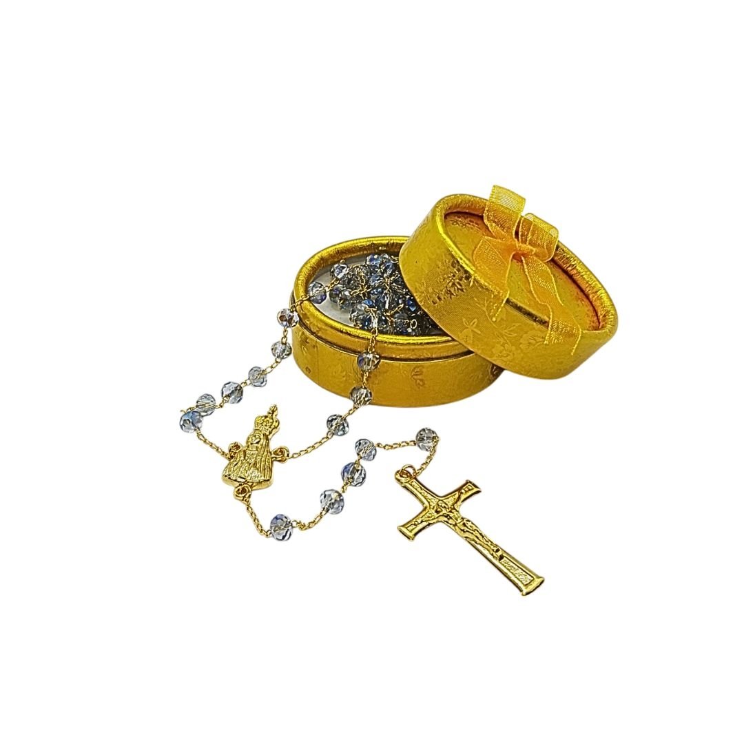 Terço/Fio de Cristal Dourado c/caixa, 6mm