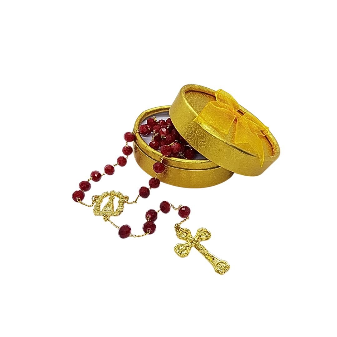 Terço/Fio de Cristal Dourado c/caixa, 8mm