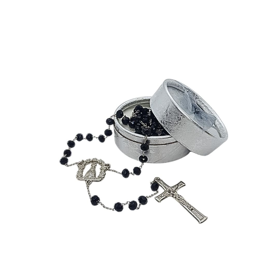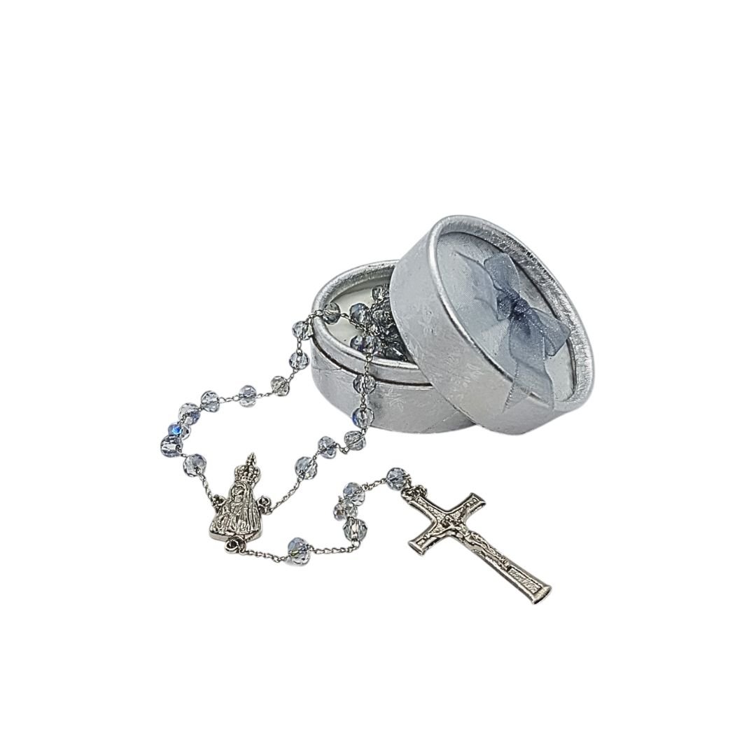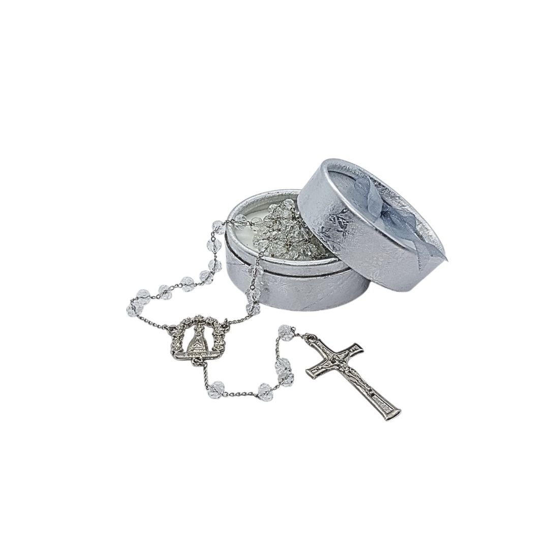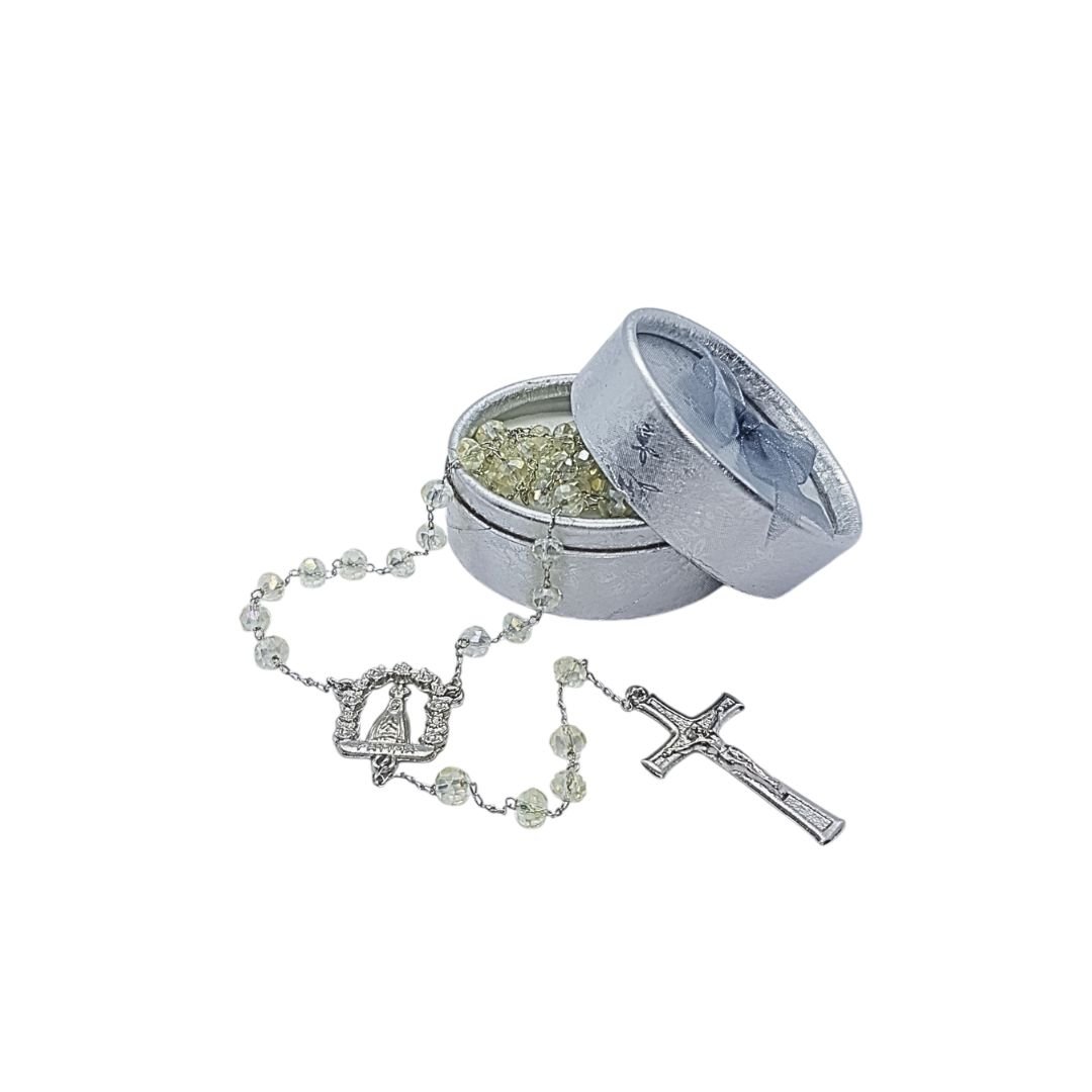Terço/Fio de Cristal Prateado c/caixa, 6mm