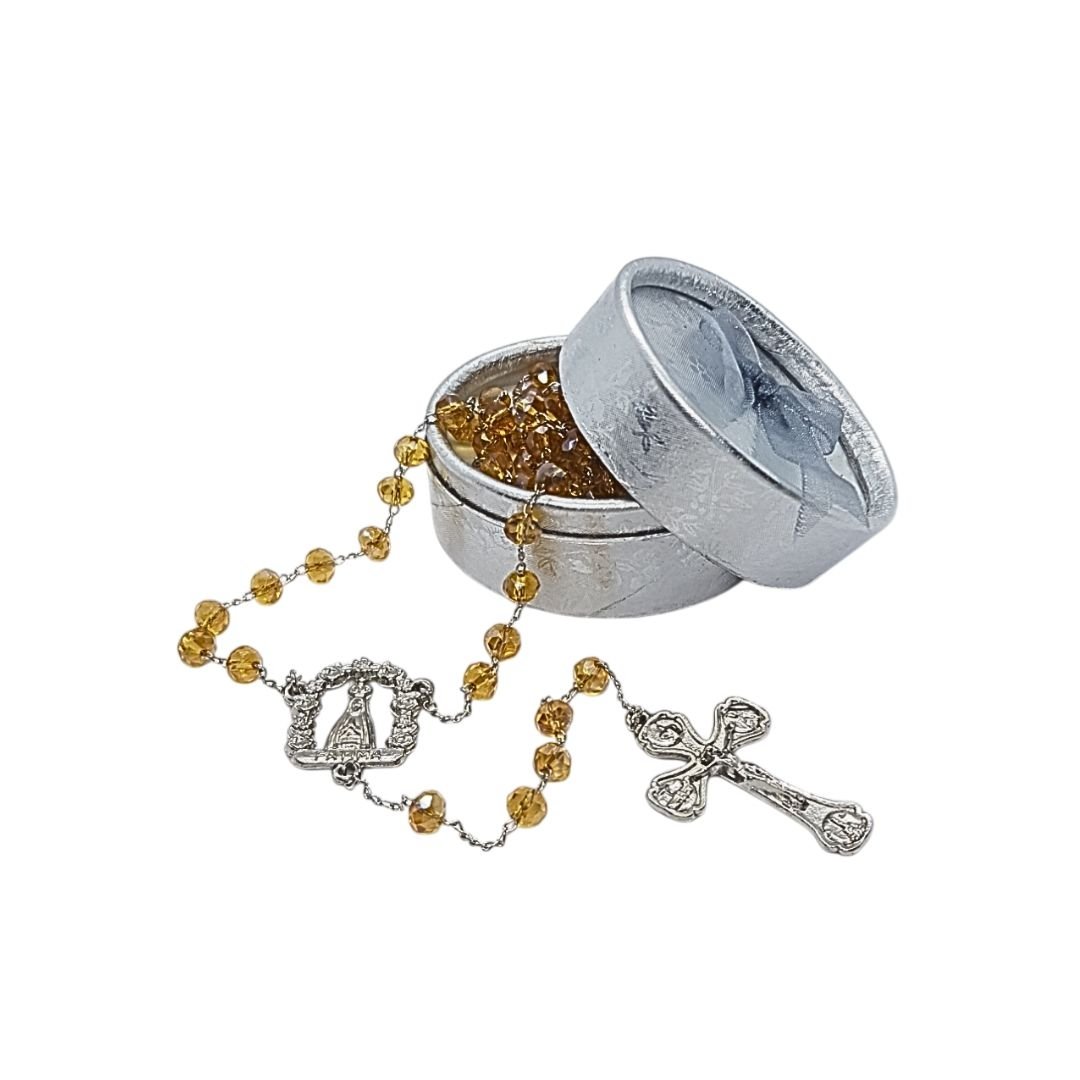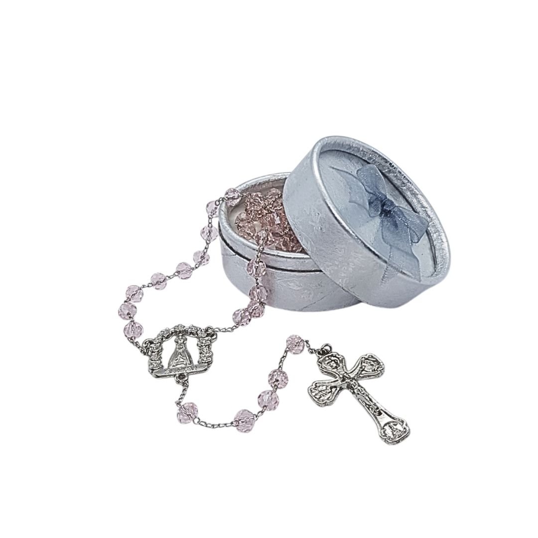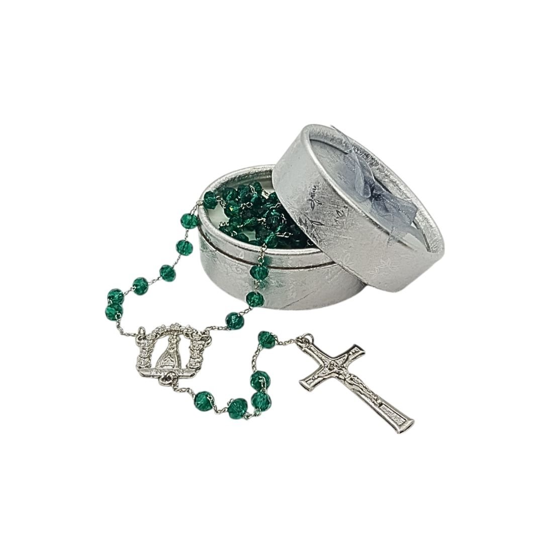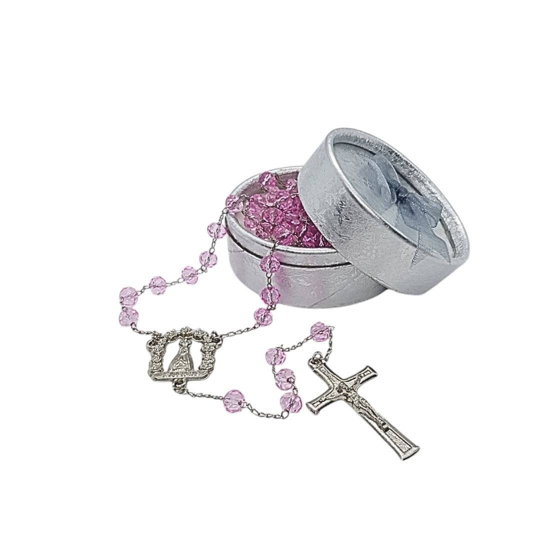 Terço/Fio de Cristal Prateado c/caixa, 6mm