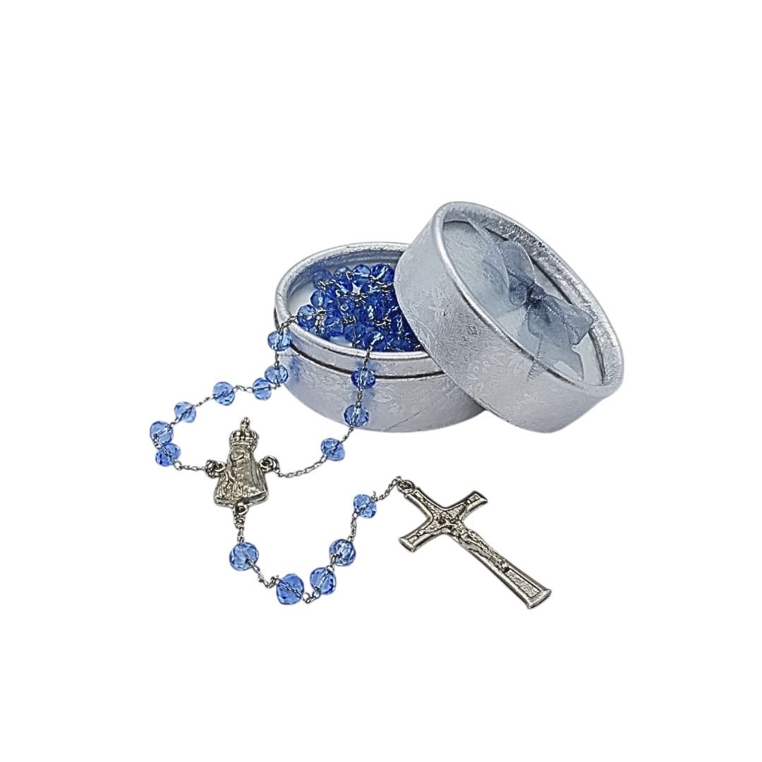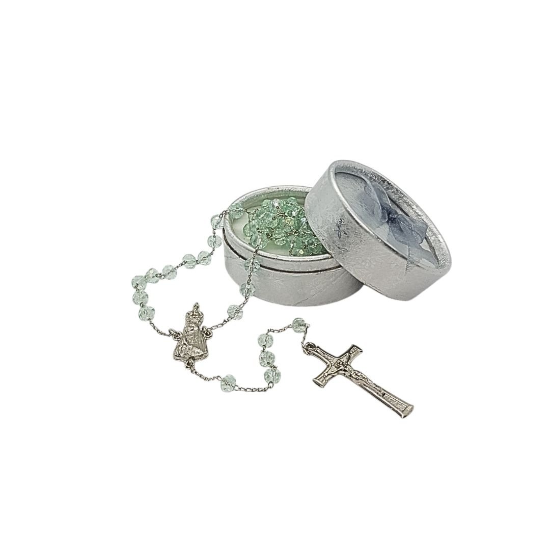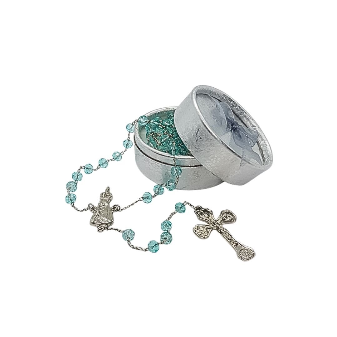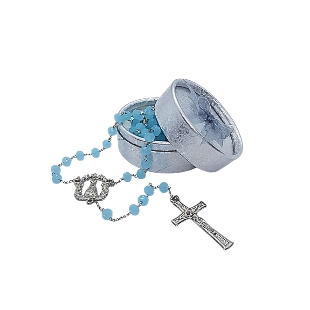 Terço/Fio de Cristal Prateado c/caixa, 6mm