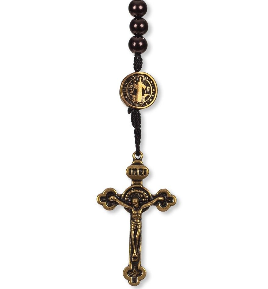 Terço Pedra Hematite Corda c/Pai Nosso São Bento, 6mm